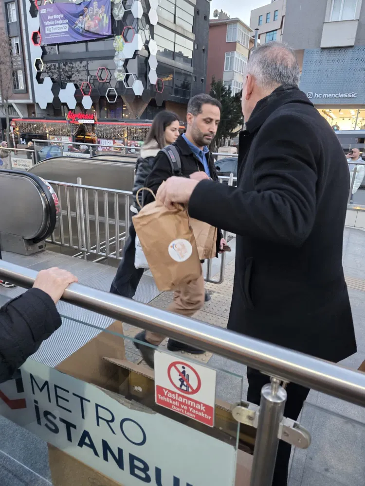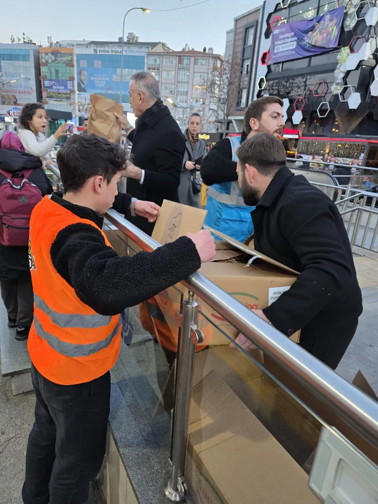 Evlerine yatişemeyen vatandaşlar için kolları sıvayan Ümraniye AK Parti İlçe Başkanı Salim Çetinkaya metro giriş ve çıkışları ile otobüs duraklarında vatandaşlara elleri ile iftarlık ikram etti.