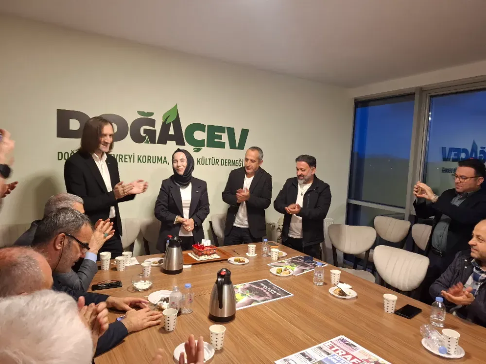 Doğaçev'in basın buluşmasına katılan Hanife Türkoğlu, basın mensuplarının karşısındaki sürpriz doğum günü kutlamasında büyük heyecan yaşadı ve mutluluğunu gizlemedi ve herkese teşekkür etti.