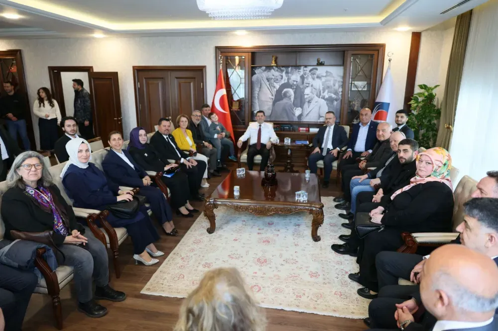 Bugün yapılan meclis oturumunun ardından Başkan Çerkez'in makamına gelen meclis üyeleri başkanın doğum gününü kutladılar.