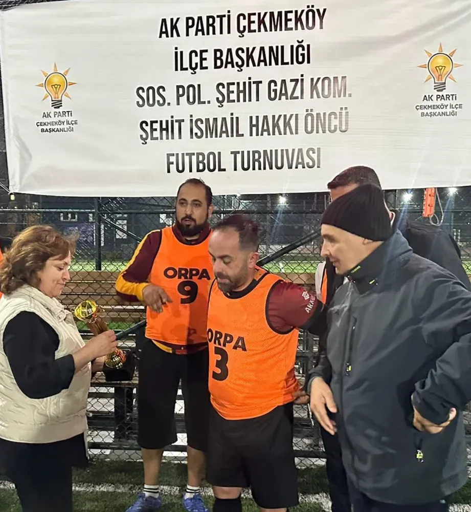 Çekmeköy AK Parti İlçe Sosyal Politikalar Şehit Gazi Komisyonu tarafından düzenlenen Şehit İsmail Hakkı Öncü Futbol tutnuvasında kazanan takıma kupasını Şehidin eşi takdim etti.