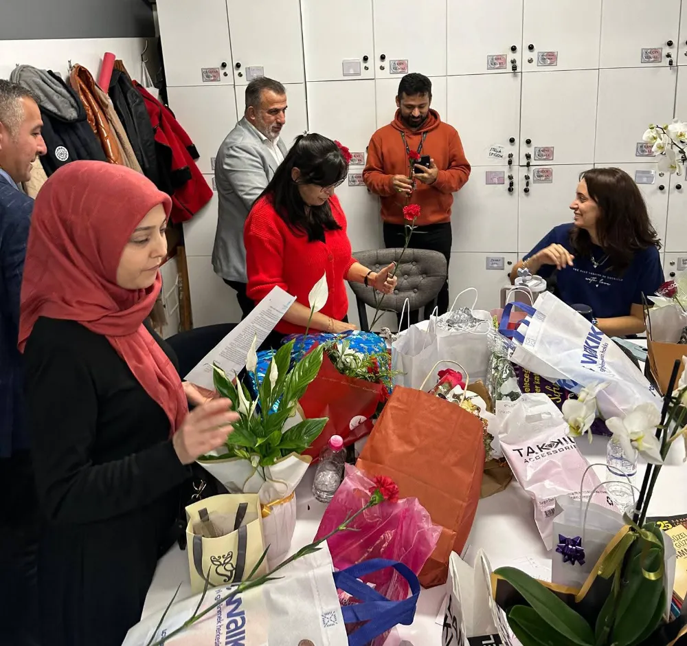 Ellerinde çiçeklerle tüm okulları tarayan teşkilat mensupları okul müdürleri ve öğretmenleri ziyaret ederek günlerini kutladılar.