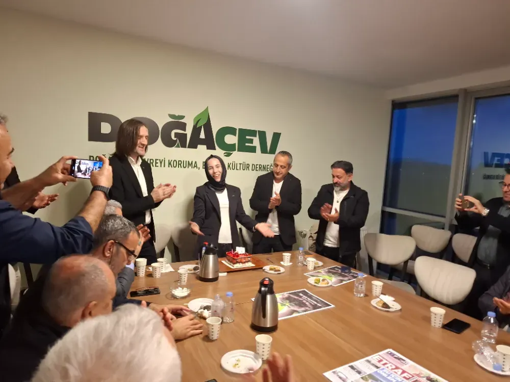 Doğaçev'in basın buluşmasına katılan Hanife Türkoğlu, basın mensuplarının karşısındaki sürpriz doğum günü kutlamasında büyük heyecan yaşadı ve mutluluğunu gizlemedi ve herkese teşekkür etti.
